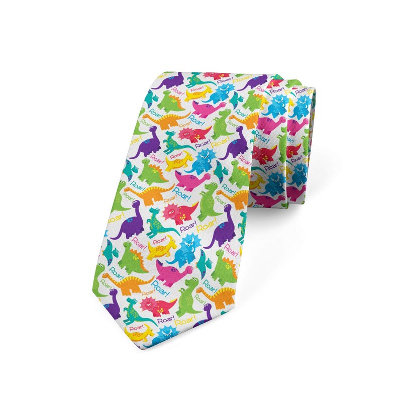 Ambesonne Necktie, Wild Dinosaur, 3.7, Turquoise Magenta
