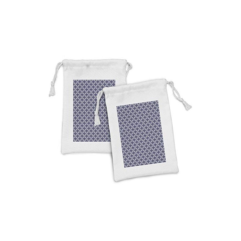 Ambesonne Oriental Fabric Pouch Set of 2, Themed Repetitive Damask with Floral Motif in Diagonal Squares, Small Drawstring Bag for Toiletries Masks and Favors, 9" x 6", Indigo White