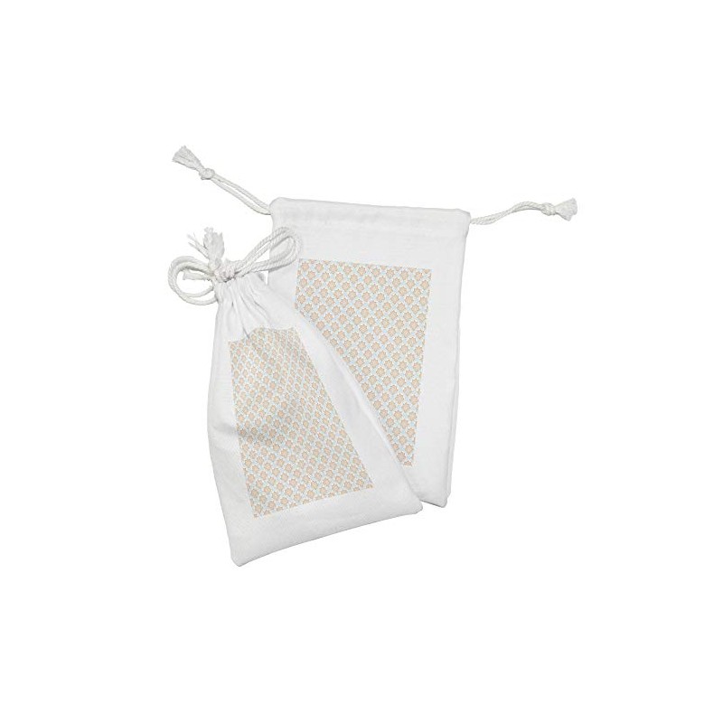 Ambesonne Oriental Fabric Pouch Set of 2, Themed Snowflake Like Floral Mandala Look Motif Repetition, Small Drawstring Bag for Toiletries Masks and Favors, 9" x 6", Apricot and Dark Seafoam