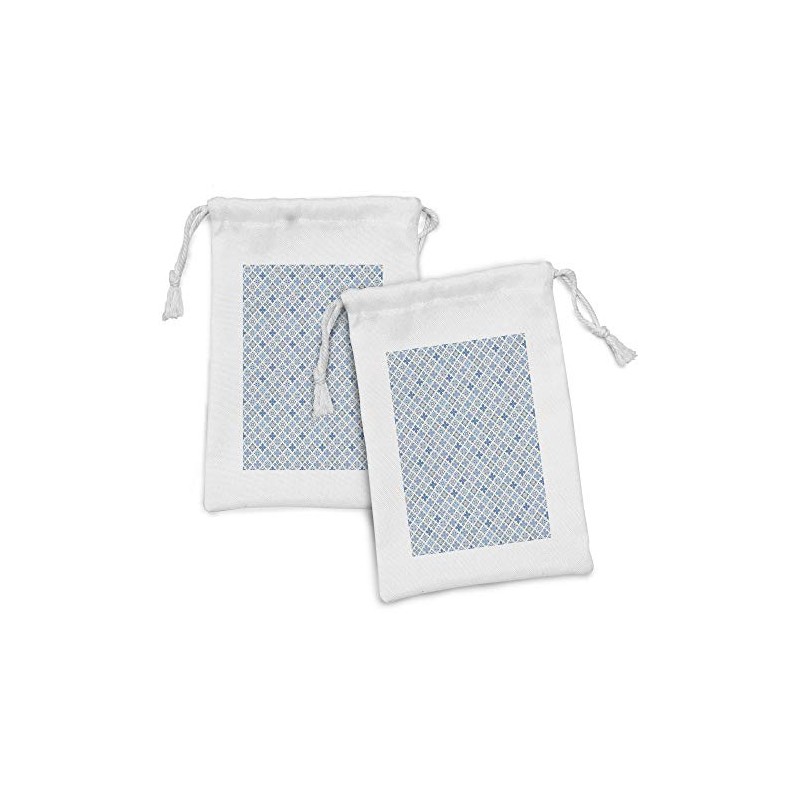 Ambesonne Oriental Fabric Pouch Set of 2, Traditional Floral Motifs Nostalgic, Small Drawstring Bag for Toiletries Masks and Favors, 9" x 6", Sky Blue White
