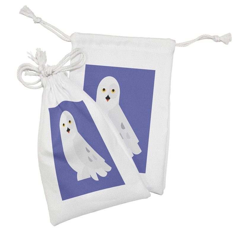 Ambesonne Owl Fabric Pouch Set of 2, Nocturnal Animal Portrait Forest Character Wildlife Digital Graphic Cartoon, Small Drawstring Bag for Toiletries Masks and Favors, 9" x 6", Violet Blue Coconut