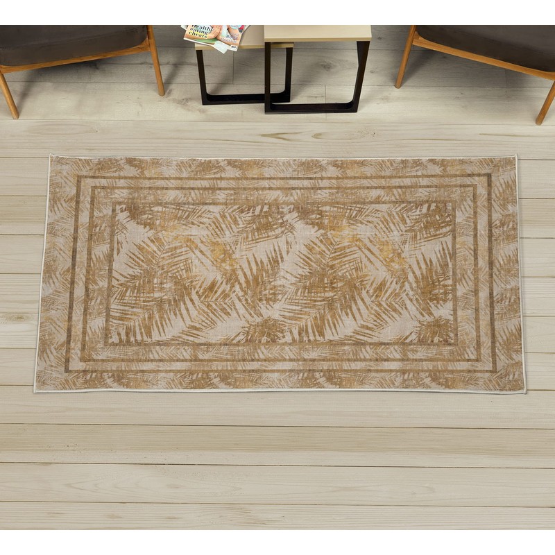Ambesonne Palm Leaf Decorative Rug, Jungle Design Grunge Neutral Earth Tones of Leaves Exotic Themed Concept, Quality Carpet for Bedroom Dorm and Living Room, 2' X 5', Dark Yellow