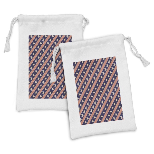 Ambesonne Prehistoric Country Fabric Pouch Set of 2, Patriotic Star Pattern in Diagonal Stripes National Theme Print, Small Drawstring Bag for Toiletries Masks and Favors, 9" x 6", Navy Coral Cream