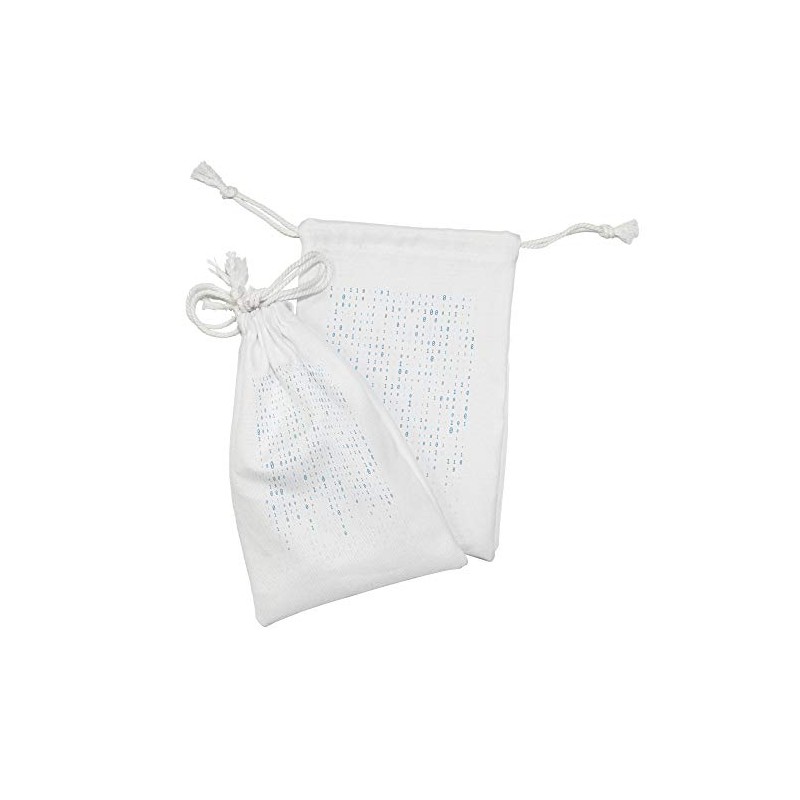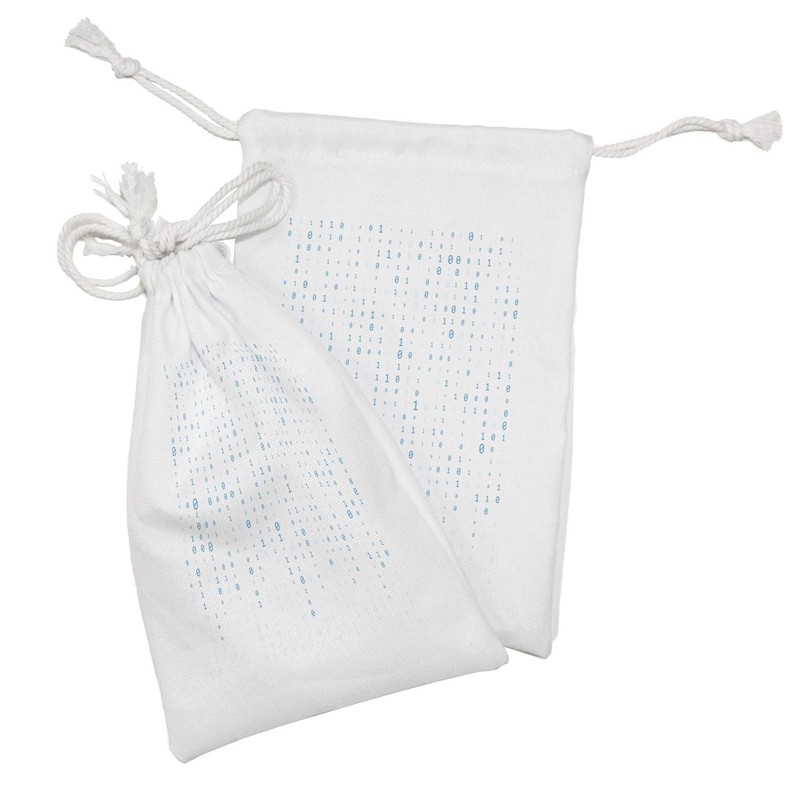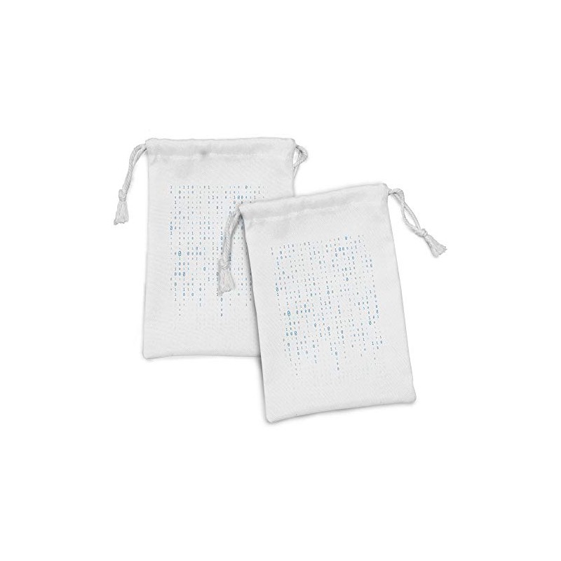 Ambesonne Programmer Fabric Pouch Set of 2, Cryptography Programming Themed Matrix Digital Binary Falling Code Rain, Small Drawstring Bag for Toiletries Masks and Favors, 9" x 6", White and Sea Blue