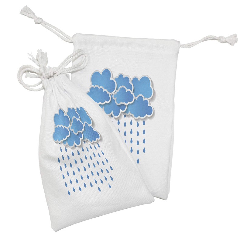 Ambesonne Rain Fabric Pouch Set of 2, Trippy Convective Cloud Group Like Savannah Forecast Drips Theme Autumn Rain, Small Drawstring Bag for Toiletries Masks and Favors, 9" x 6", Blue White