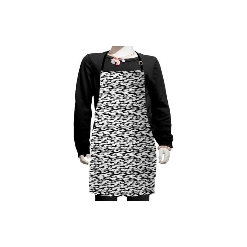 Ambesonne Retro Apron, Bold Pattern with Thick Brushstrokes and Thin Stripes Monochrome, Small Apron Bib with Adjustable Ties for Baking Painting, Small Size, Black and White