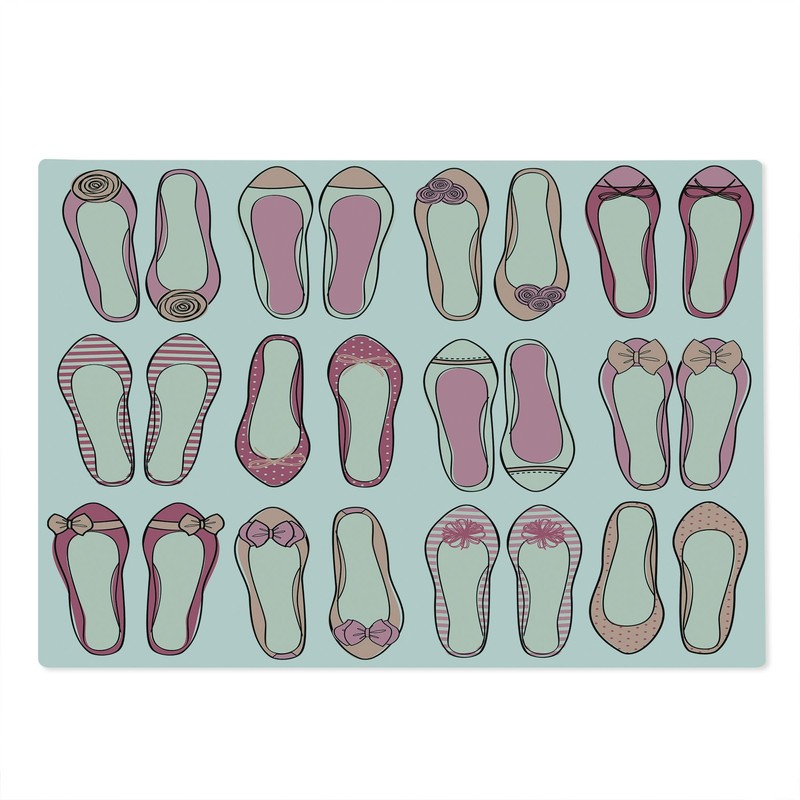 Ambesonne Retro Cutting Board, Ballerina Shoes with Ribbon Roses Stripes and Polkadots Feminine Design, Decorative Tempered Glass Cutting and Serving Board, Large Size, Beige Pink