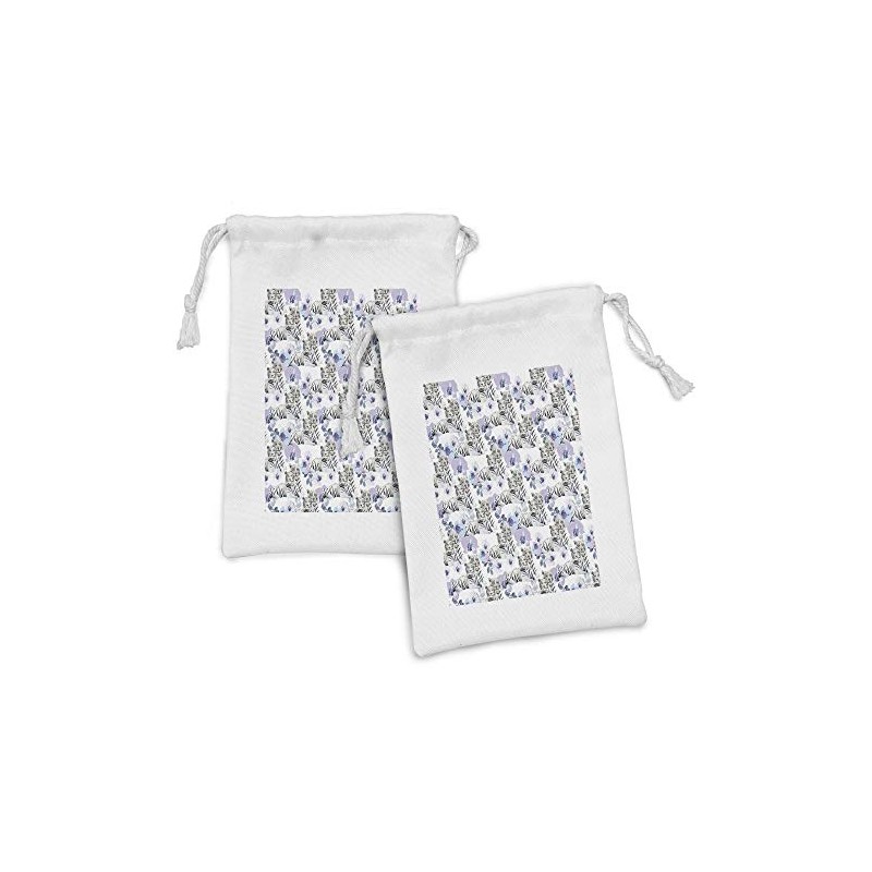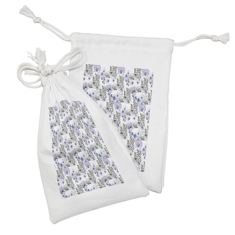 Ambesonne Savannah Fabric Pouch Set of 2, Savannah Nature Leopards with Exotic Flowers Boho Wild Life Theme Violets, Small Drawstring Bag for Toiletries Masks and Favors, 9" x 6", Multicolor