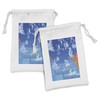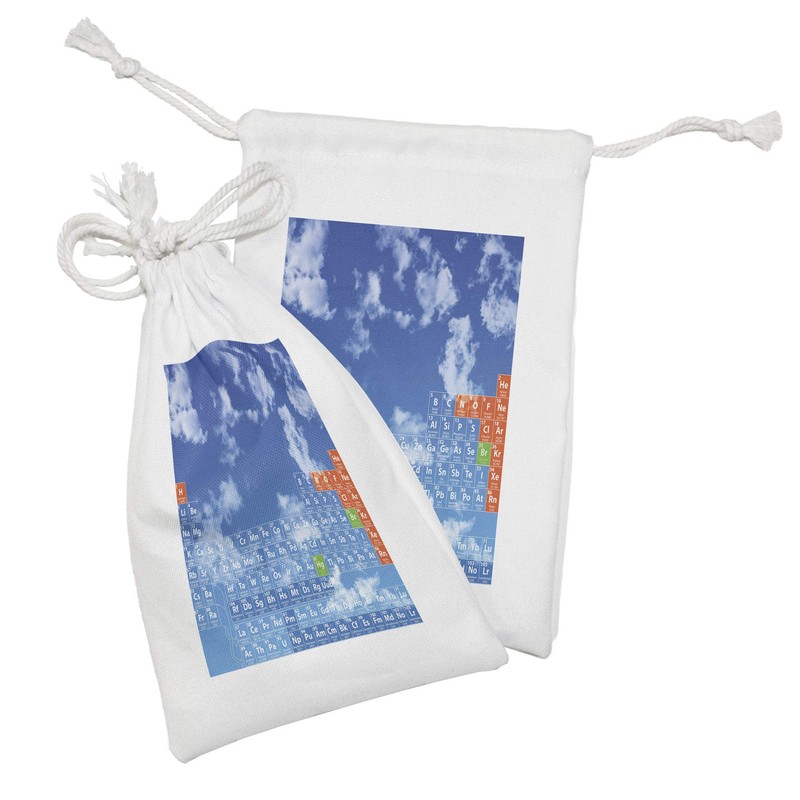 Ambesonne Science Fabric Pouch Set of 2, Clear Open Sky with Clouds and Chemistry Table Pattern Smart Student Print, Small Drawstring Bag for Toiletries Masks and Favors, 9" x 6", White and Blue