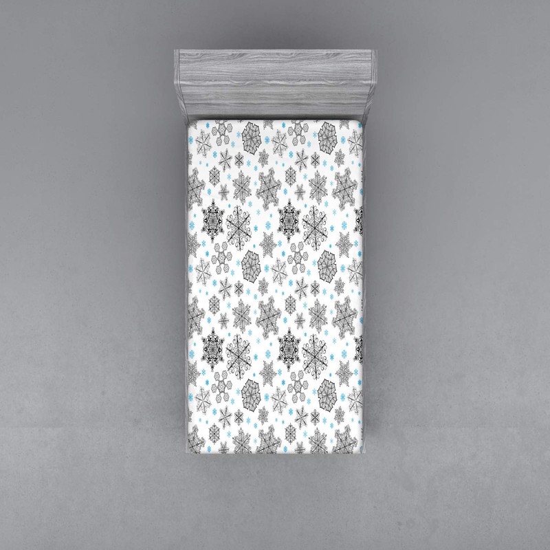 Ambesonne Snowflake Fitted Sheet, Lace Style Arrangement of Snowflakes Winter Season Christmas Illustration, Bed Cover with All-Round Elastic Deep Pocket for Comfort, Twin XL Size, White Black