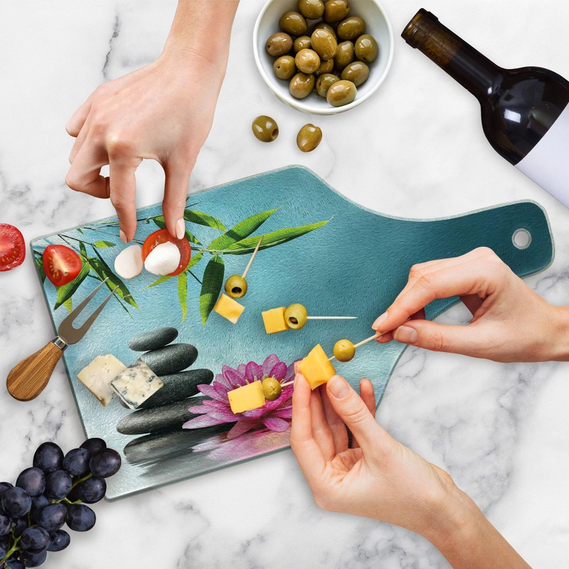 Prepare and serve your food with style! These decorative cutting and serving boards are the perfect accent accessory for your kitchen countertop and table setting. Ideal for slicing, dicing, chopping, and serving fruits, vegetables, meat, cheese, fish, bread, and pastries. With tens of 1000's of fresh and fun designs, you can find the perfect serving board for any occasion, event, or just daily use. Great for dinner parties, housewarming, birthday celebrations, bridal showers, baby showers, entertaining, family gatherings, and casual dinners. They can be used indoor and outdoor. Environmentally friendly, no dye substance harming the health of your family. The glass surface is extremely durable and very easy to clean. Colors won't fade thanks to new digital printing methods. They are durable and will last long. It is a perfect gift idea for your wife, husband, best friend, mom, dad, sister, brother, grandma, colleague, and all other beloved ones with many surprising designs. Customized, personalized products are very popular. As manufacturers of digitally printed design products, we follow current trends and bring you the latest hot fashion products. Either a gift to your family or friend, relative or boyfriend girlfriend, or to yourself, the item should be interesting and authentic. The digital images we display have the most accurate color possible, however, due to differences in computer monitors, we cannot be responsible for variations in color between the actual product and your screen.