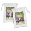 Ambesonne Spa Themed Fabric Pouch Set of 2, Stones Candles and Eastern Folk Relaxation Themed Botanical Trees Scene Print, Small Drawstring Bag for Toiletries Masks and Favors, 9" x 6", Multicolor