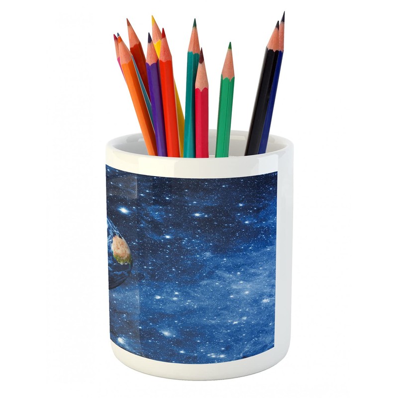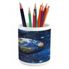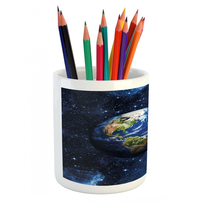 Ambesonne Space Pencil Pen Holder, Outer View of Planet Earth in Solar System with Stars Life on Globe Themed Image, Ceramic Pencil Holder for Desk Office Accessory, 3.6" X 3.2", Blue Green