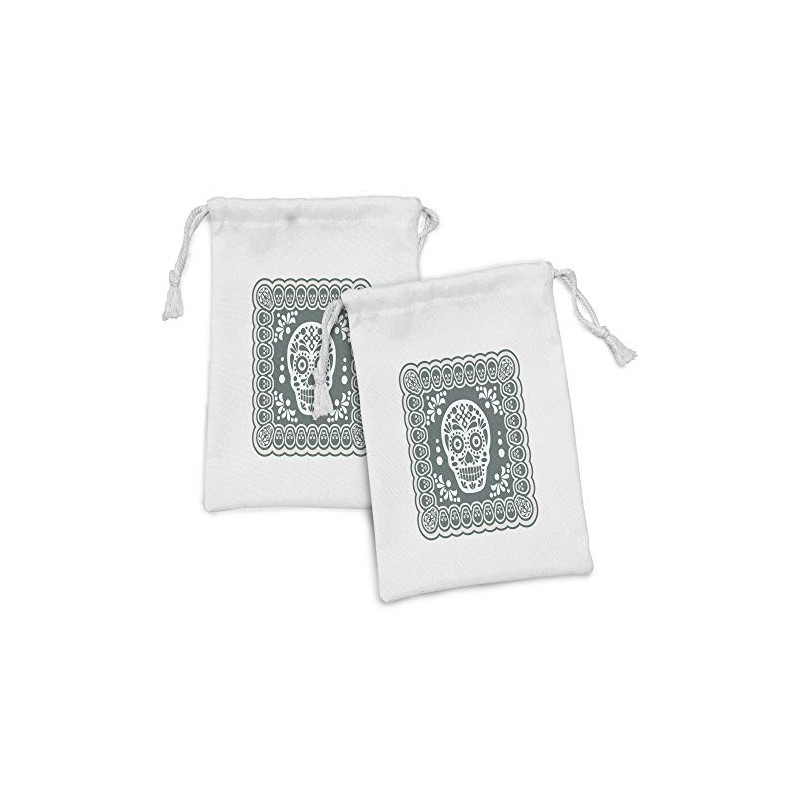Ambesonne Sugar Skull Fabric Pouch Set of 2, Mexican Dia de los Muertos in a Frame with Smaller Skulls, Small Drawstring Bag for Toiletries Masks and Favors, 9" x 6", Grey Teal and Coconut