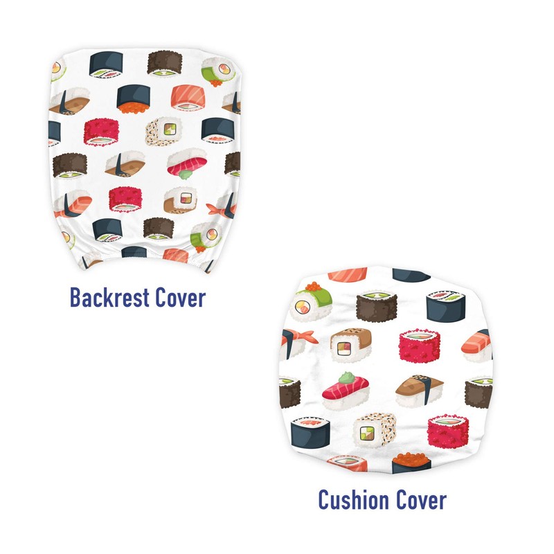 Ambesonne Sushi Office Chair Slipcover, Yummy Sushi Rolls Japanese Maki and Nigiri Food Rice and Tuna Traditional Meal, Protective Stretch Decorative Fabric Cover, Standard Size, Pink Grey