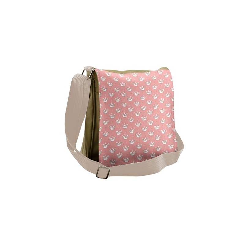 Ambesonne Swan Messenger Bag, Patterned Wings and Hearts, Unisex Cross-body