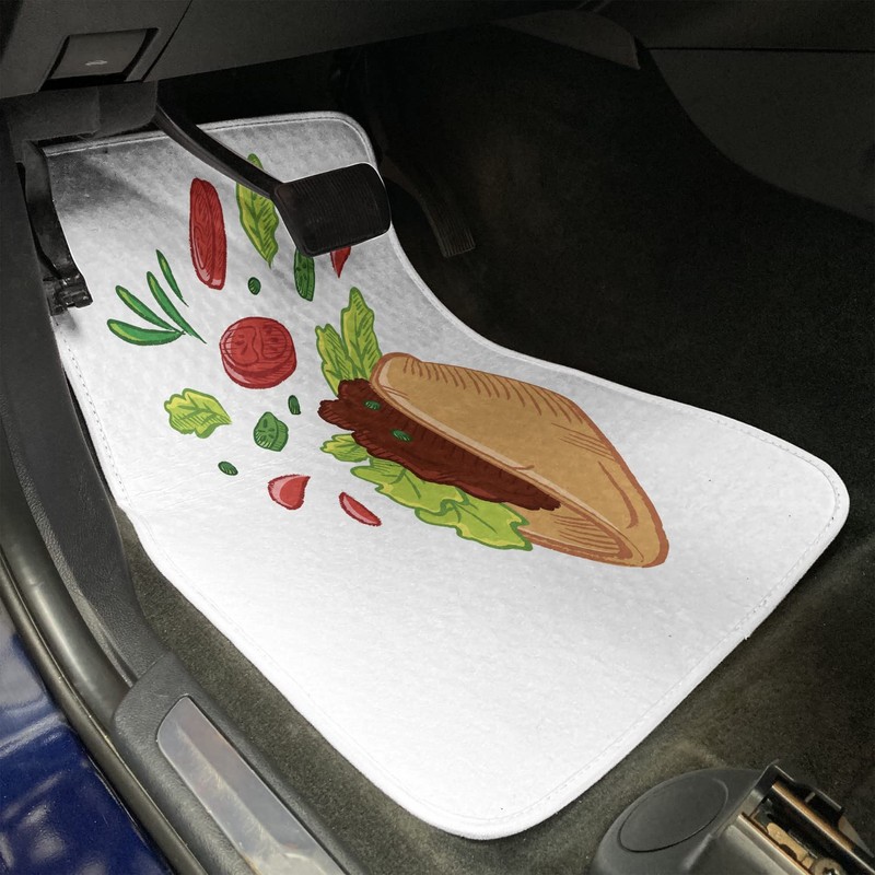 Ambesonne Taco Car Mat Set of 2, Vegan Snacks with Mexican Wheat Tortilla Lettuce Tomato Fast Food Menu, Front Seat Floor Mat Durable PVC Backing Accesory, 27.5" x 17.9", Lime Green Sand Brown