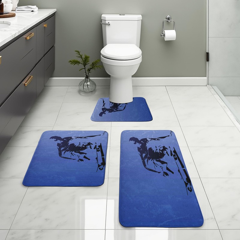 - 3-Piece Bathroom Mat Set - Includes 2 rectangular rugs (30.2" x 20" and 47" x 19") and a U-shaped contour mat (20" x 16"). Designed to fit around your toilet base and complement your bathroom floor.