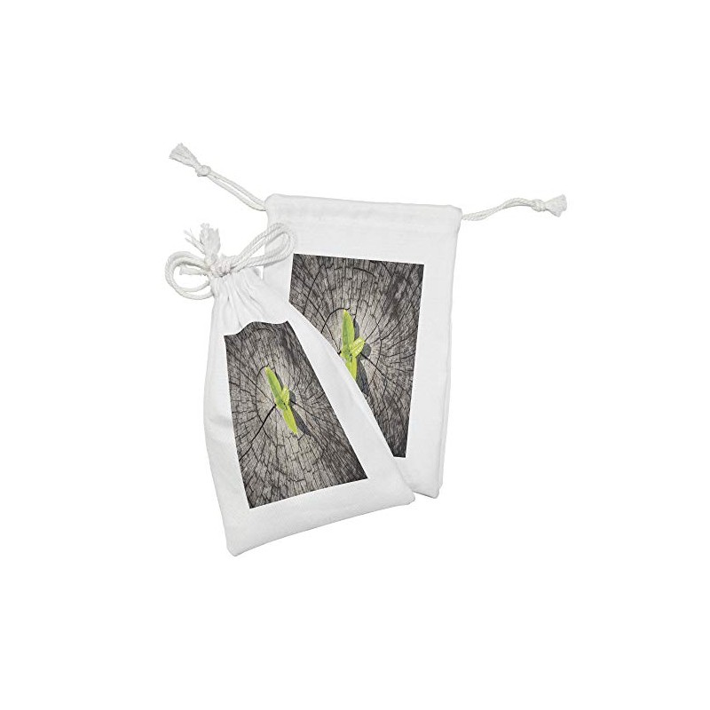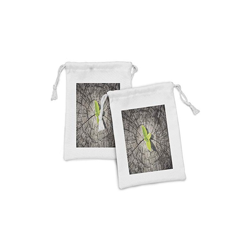 Ambesonne Tree of Life Fabric Pouch Set of 2, Dried Earth with Last Bush Saving Planet Symbolic Image Hope Nature Home, Small Drawstring Bag for Toiletries Masks and Favors, 9" x 6", Brown Green