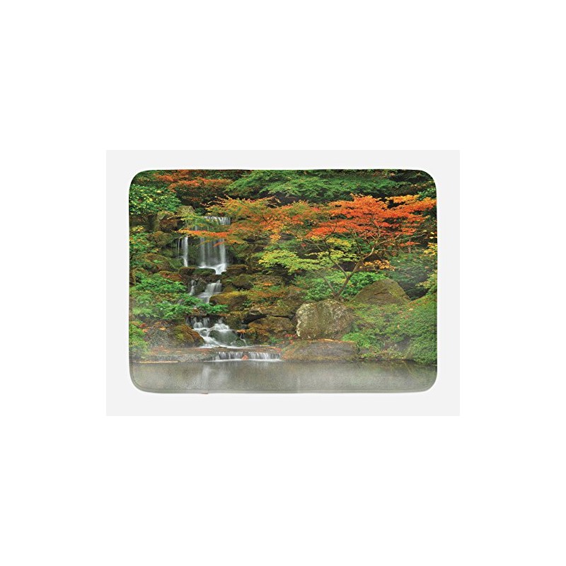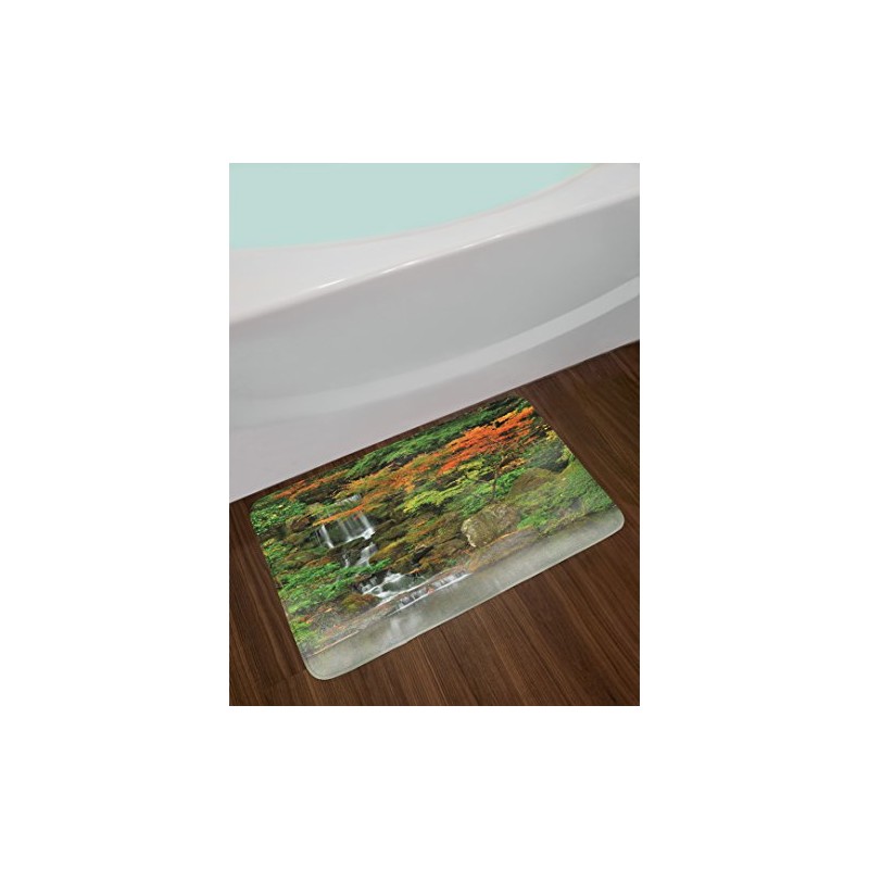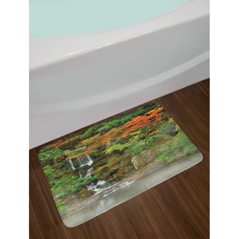 Ambesonne Waterfall Bath Mat, Wild Small Cascade Pouring Over Steep Stones Peaceful Fall Autumn Motion Scene, Plush Bathroom Decor Mat with Non Slip Backing, 30.2" x 20", Orange Brown