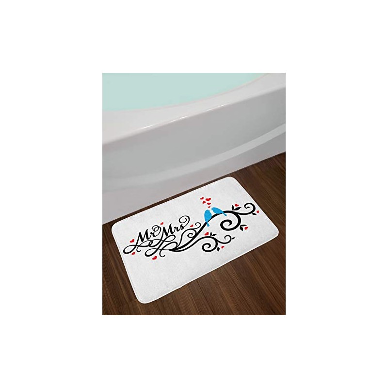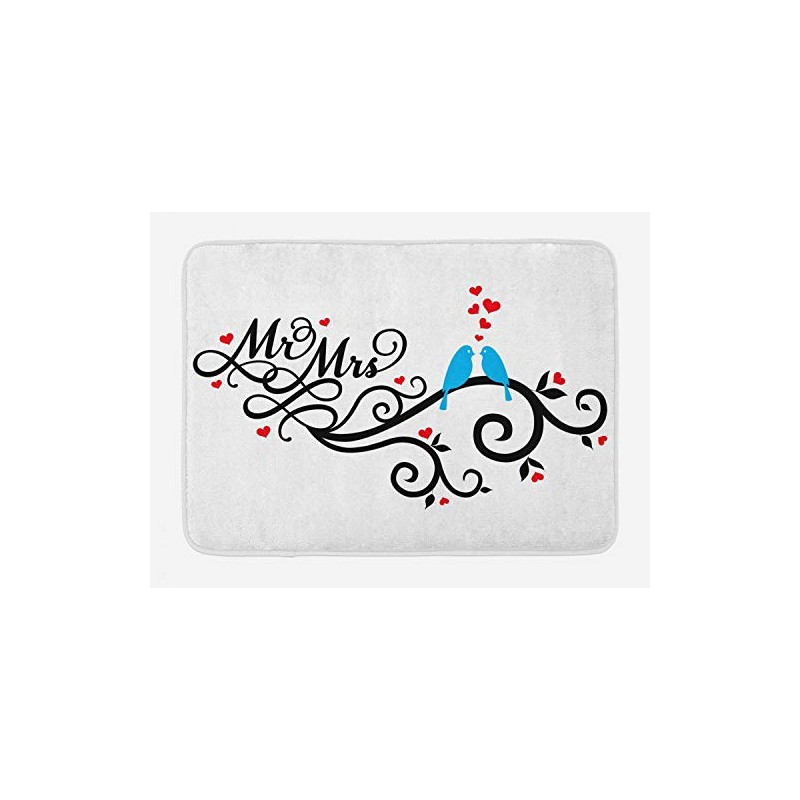 Ambesonne Wedding Bath Mat, Mr. and Mrs. Swirled Branches Hearts Love Birds H...