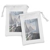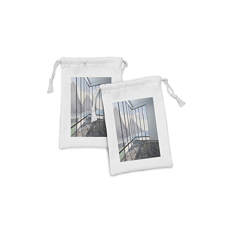 Ambesonne White Fabric Pouch Set of 2, Mountain Ocean Sea Clouds Scenery from Glass Window Photograph, Small Drawstring Bag for Toiletries Masks and Favors, 9" x 6", Charcoal Grey Sky Blue