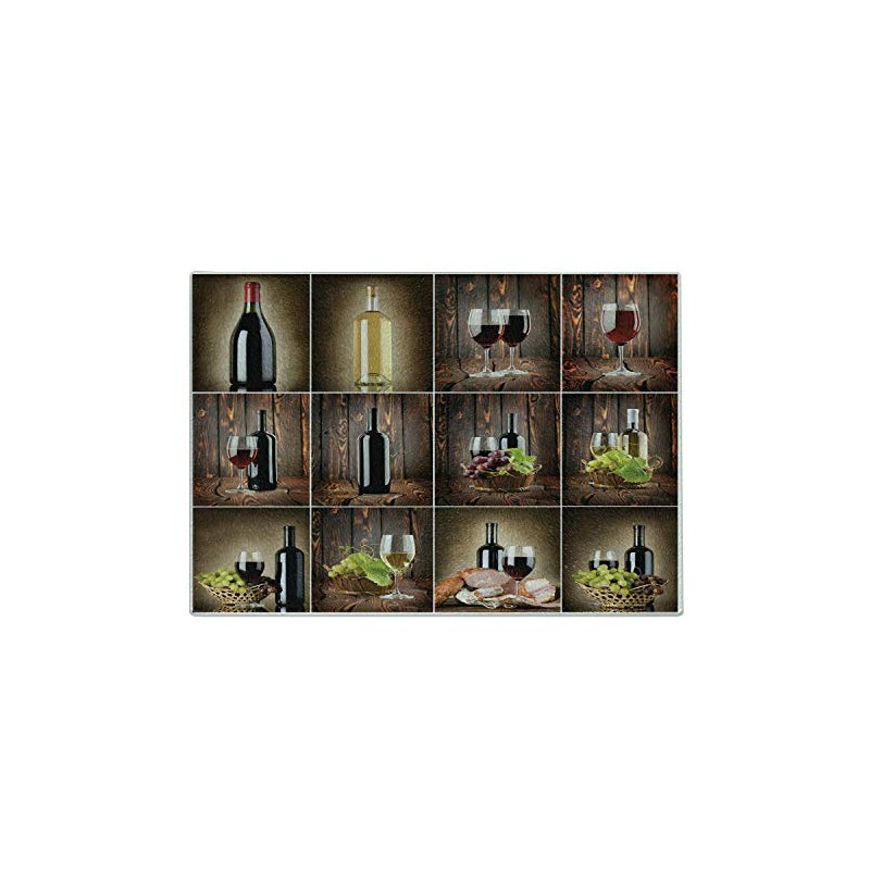 Ambesonne Wine Cutting Board, Drink Themed Collage on Wooden Backdrop Grapes and Meat Rustic Country Theme, Decorative Tempered Glass Cutting and Serving Board, Small Size, Brown Black