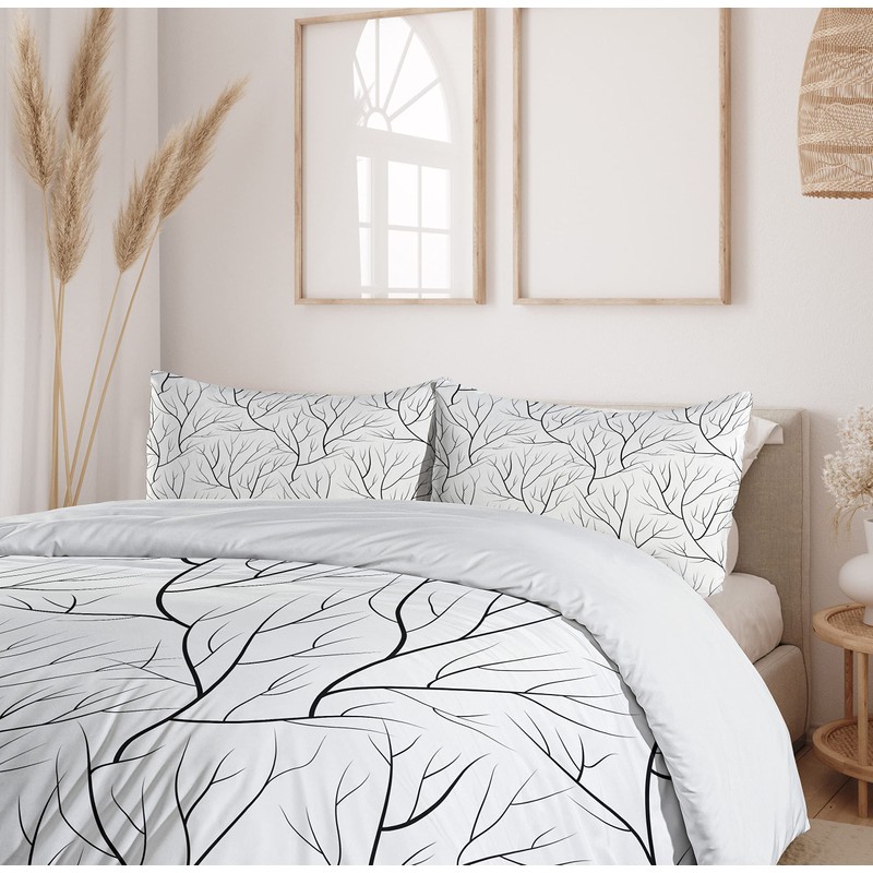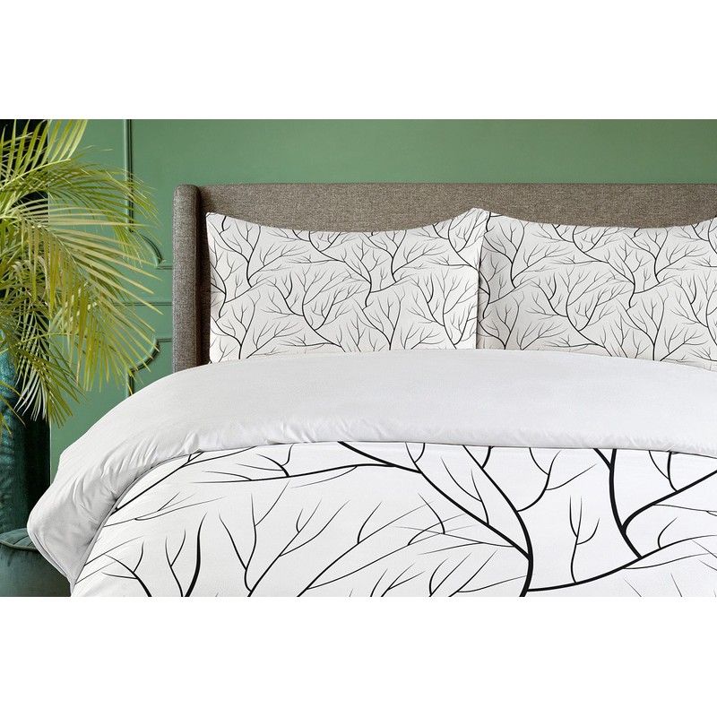 Ambesonne Winter Duvet Cover Set, Winter Tree Without Leaves Nature Theme Delicate Branches Pattern Japanese Style, Decorative 3 Piece Bedding Set with 2 Pillow Shams, Queen Size, White and Black