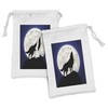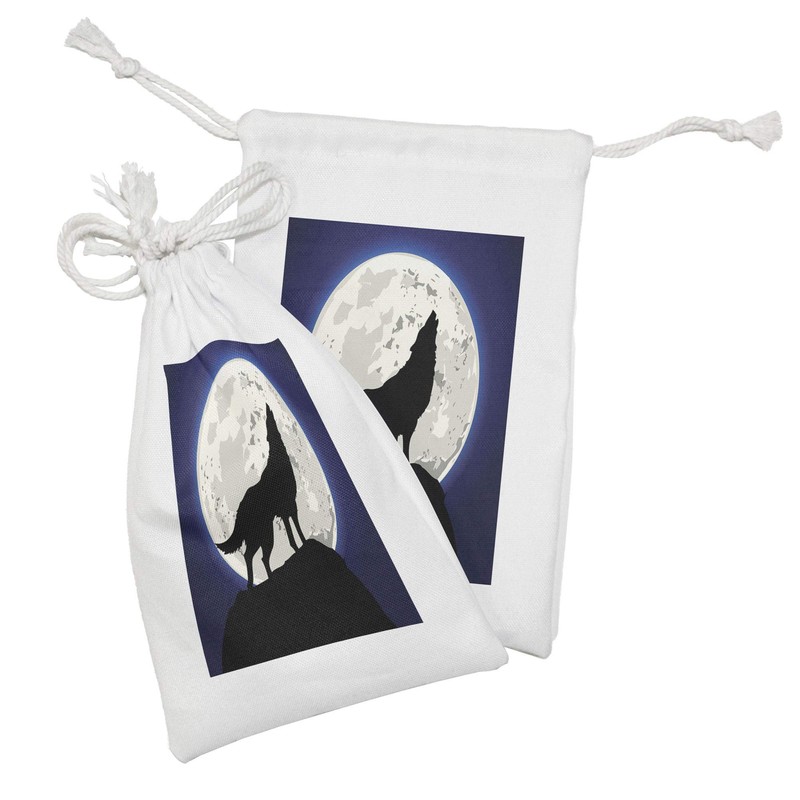 Ambesonne Wolf Fabric Pouch Set of 2, Howling Animal on a High Cliff with Pastel Toned Big Full Moon at Night, Small Drawstring Bag for Toiletries Masks and Favors, 9" x 6", Navy Blue Black and Ivory