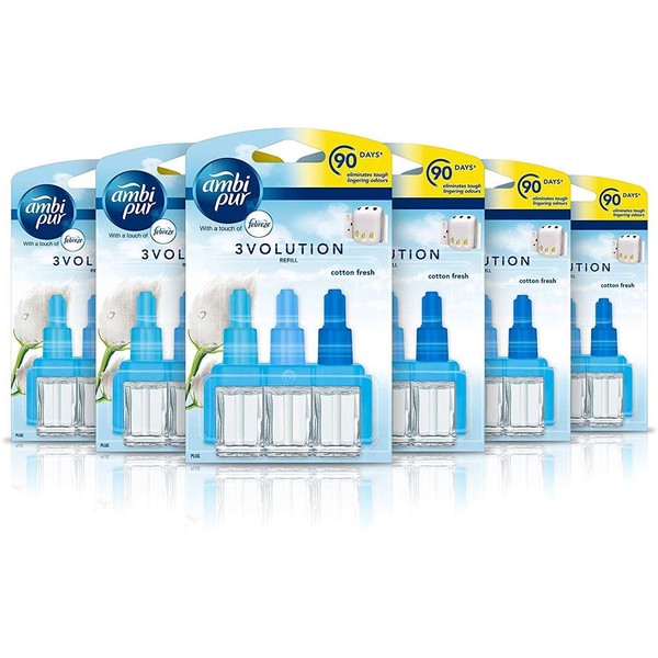 Ambi Pur 3Volution Cotton Fresh Air Freshener Plug-in Refill, 20 ml, Pack of 6