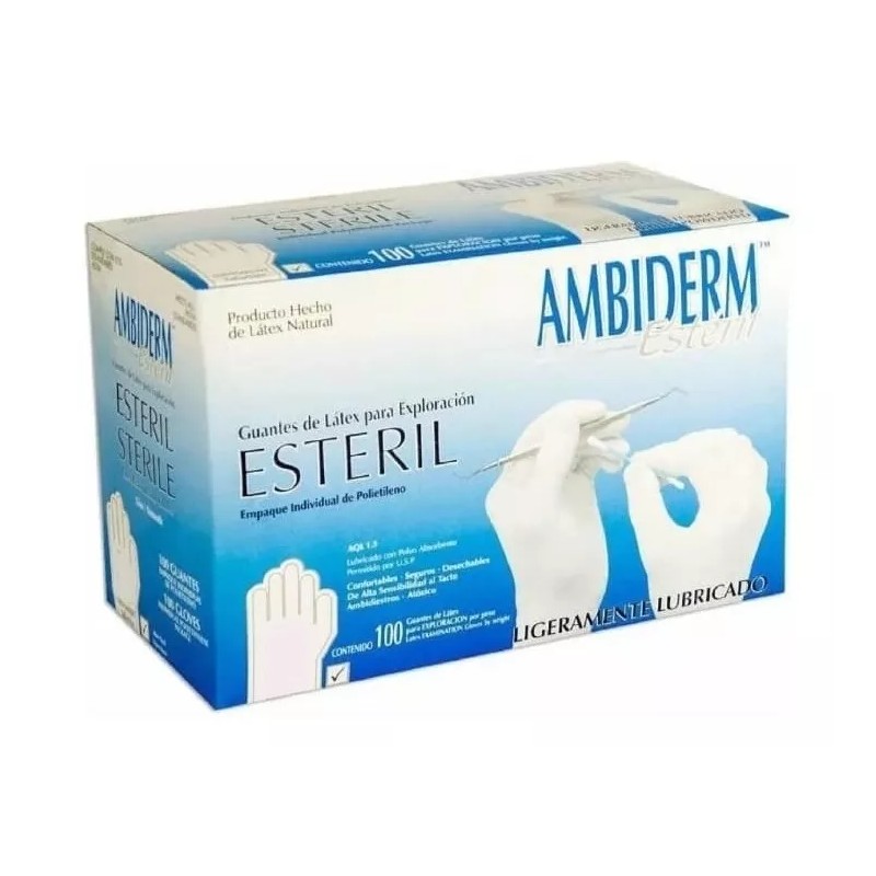 Ambiderm 5 Cajas Guantes Ambiderm Estéril Caja 100 Piezas
