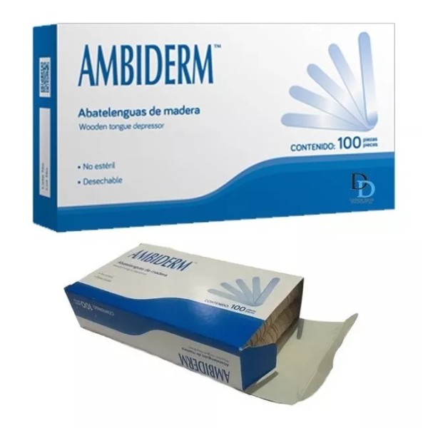 Ambiderm Abatelenguas De Madera Ambiderm - Caja Con 100 Piezas