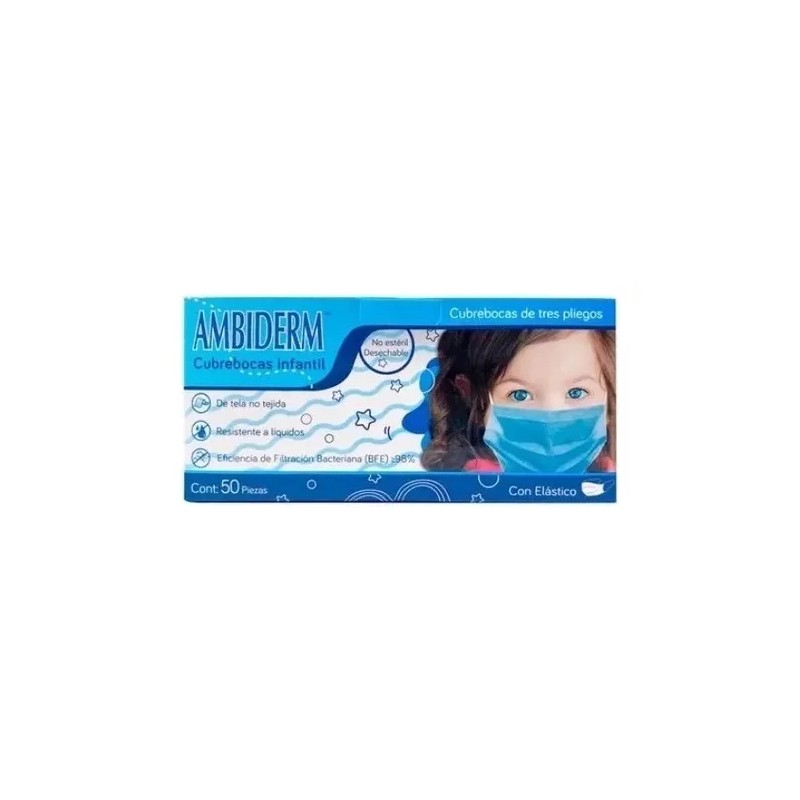 Cubrebocas Infantil Ambiderm 3 Pliegos Plisado Caja C/50pz