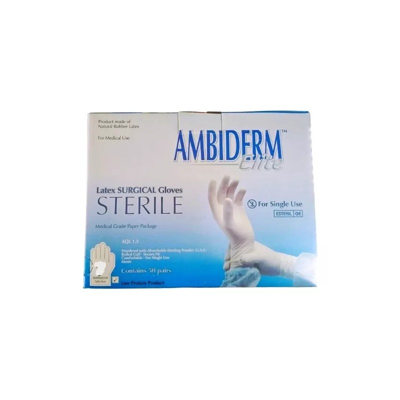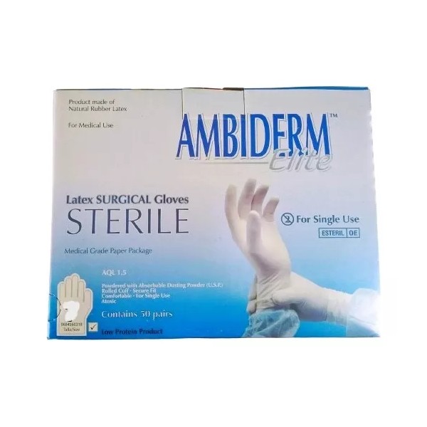 GUANTE PARA CIRUJANO ELITE AMBIDERM. CAJA C/50 PARES TALLA 7 1/2