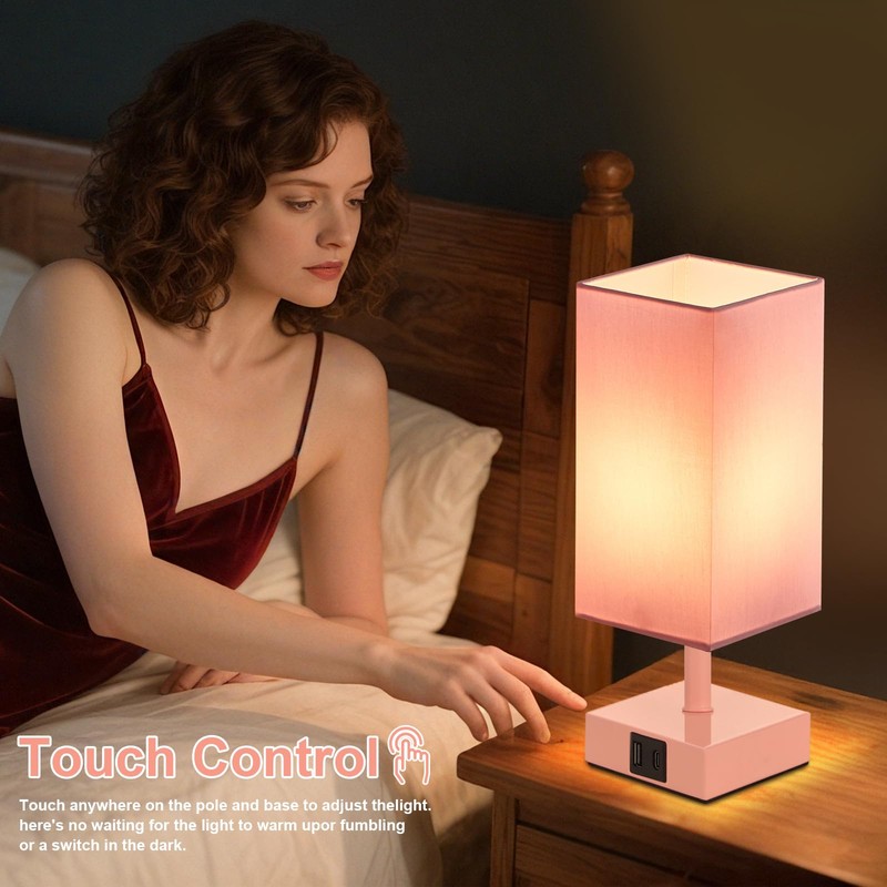 • 3-Way Dimmable Touch Bedside Lamp: Featured with smart touch sensitive sensor, small touch lamp has 3 different brightness levels and convenient to turn on/off because you can adjust light setting by tapping on metal base.
