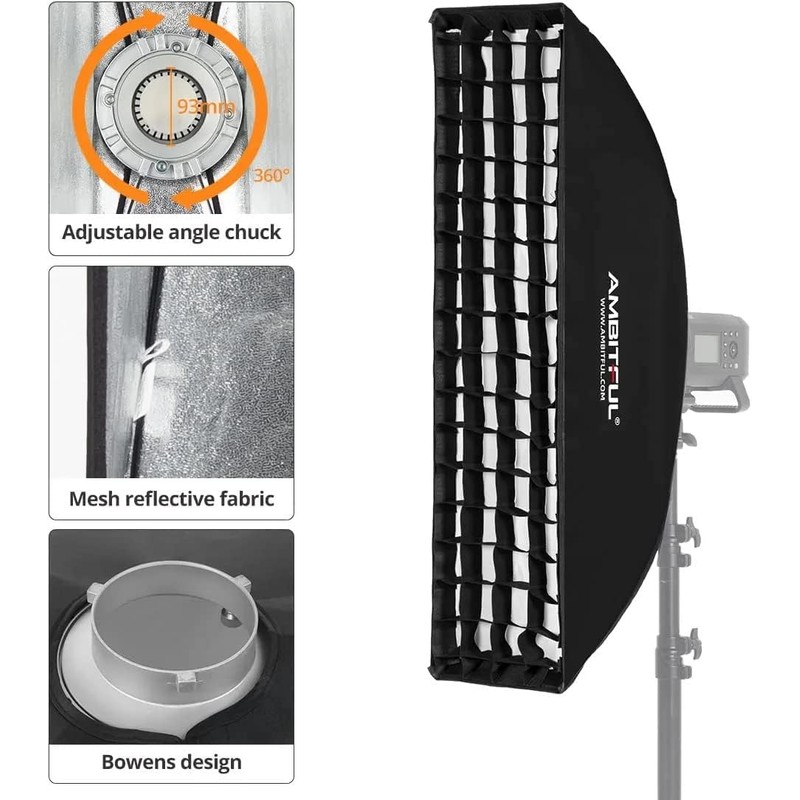 AMBITFUL 2PCS 30x120cm 12"x47" Beehive Honeycomb Grid Strip Softbox Bowens Mount for Studio Flash