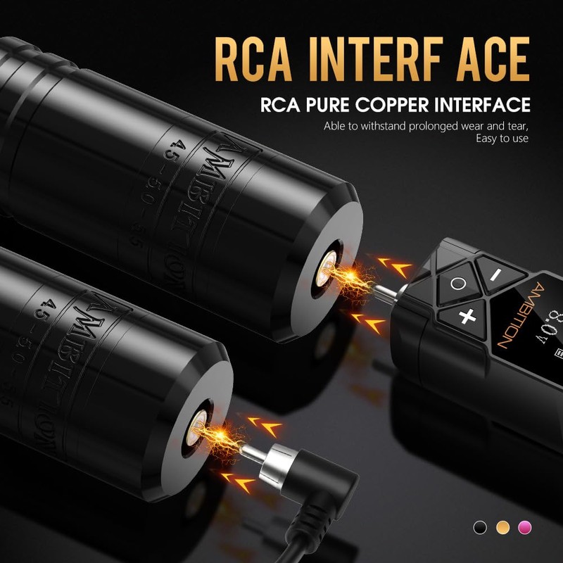 - Power Pack: The wireless tattoo power supply capacity is 2400mAh, the working voltage is 4-12V, the adjustment is ±0.1V. Support 10 hours working time under normal 8V voltage.The LED screen displays the working voltage, working time and remaining power. Support jumpstart function,double-click the power button to turn on(J)/turn off(S) the jumpstart, support your machine to defeat the stiffest of cartridge needle membranes.Compatible with most RCA tattoo machines.
