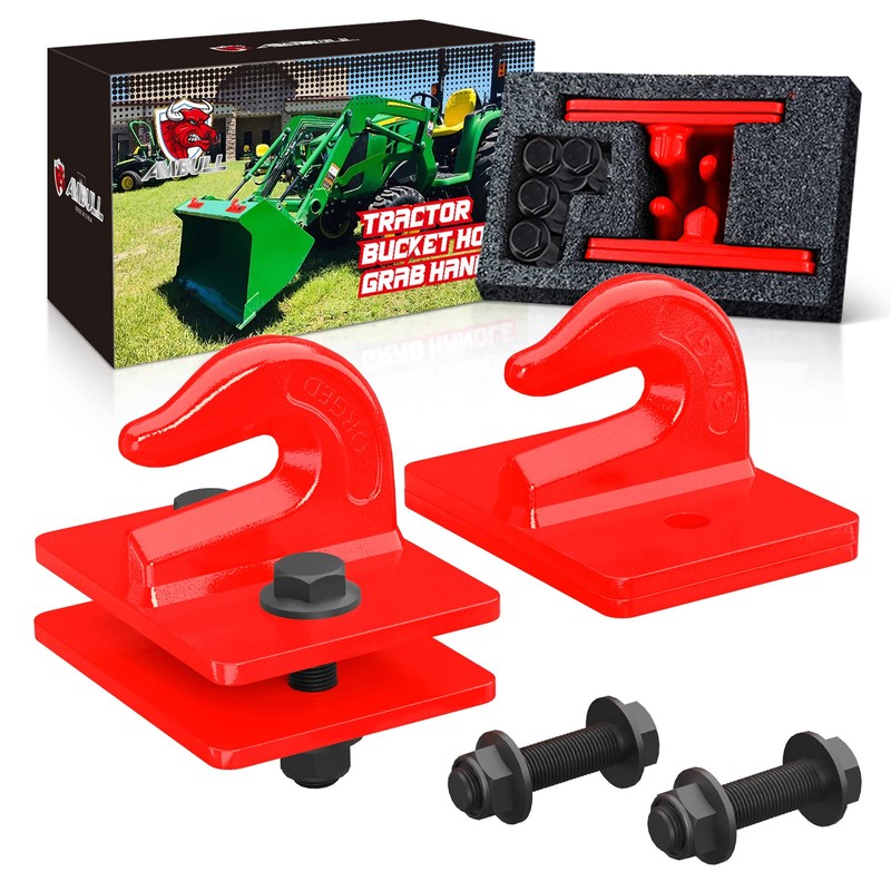 AMBULL 2 Pack 3/8" Tractor Bucket Grab Hook Grade 70 Forged Steel Bolt On Grab Hook Tow Hook Mount with Backer Plate,Work Well for Tractor Bucket, RV, UTV,Truck, Max 15,000 lbs, Red