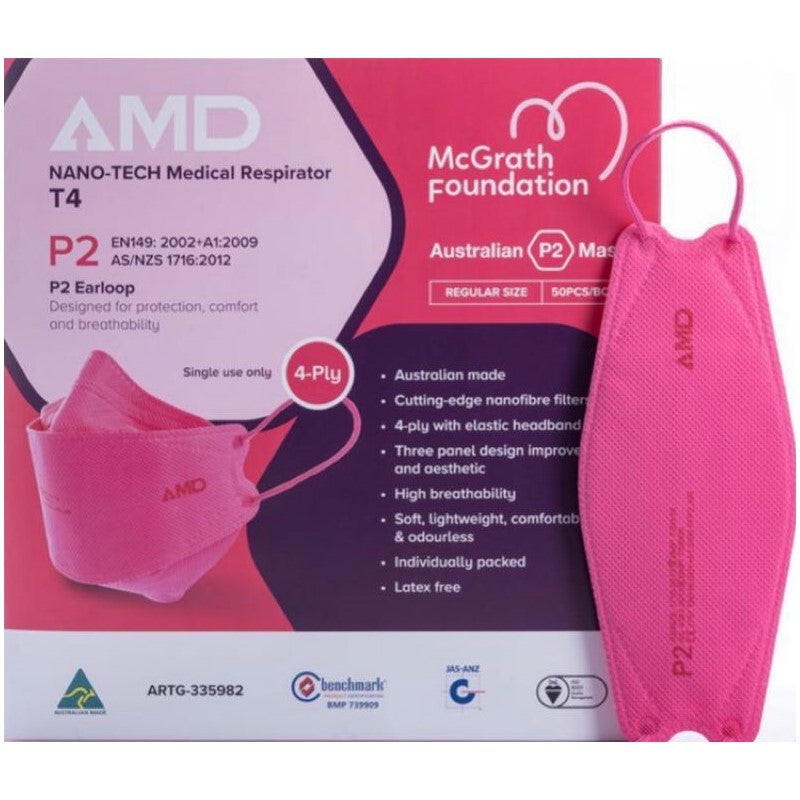 AMD Face Mask - Pink Mask AMD NANO-TECH P2 (N95) Particulate Respirator T4 Earloop with Four Layers 50 Pack - Pink