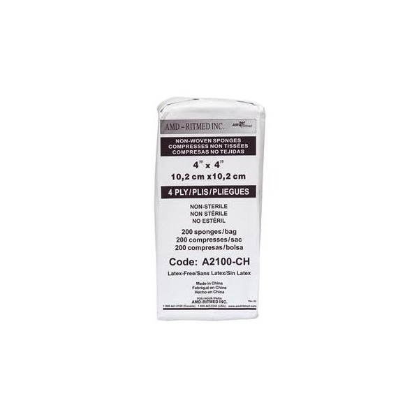 AMD-Ritmed general purpose Non-Woven Sponges, Non-Sterile, 4 ply, 200 units (4" X 4")