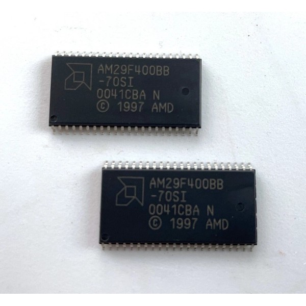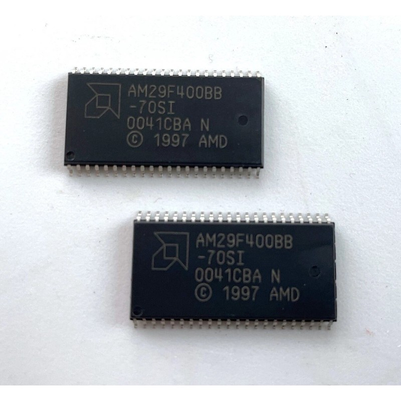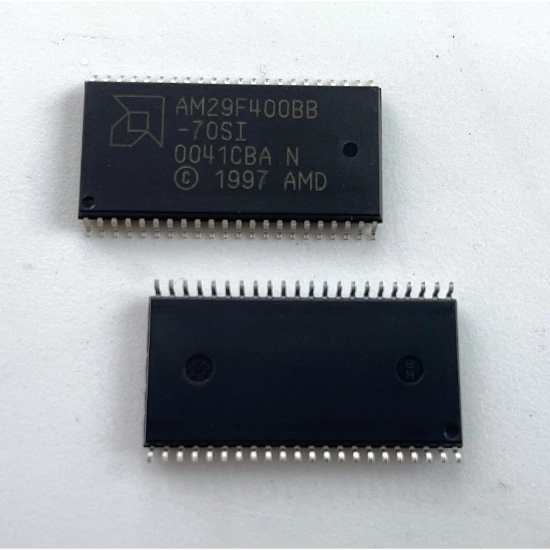 AMD / Spansion / Micron AM29F400BB-70SI Parallel NOR Flash Memory. 4MBit: 512K x 8 or 256K x 16 organization.  5V, 70ns access time.  SOIC-44 package.  -40 to 85C Industrial operating temperature range.  New old stock - genuine AMD part.