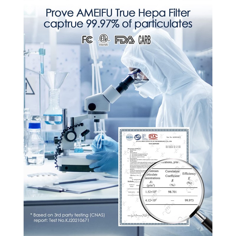 AMEIFU Air Purifiers for Home Large Room up to 2300sq.ft, H13 True Hepa Air Purifiers for Pets Hair, Dander, Smoke, Pollen, 3 Fan Speeds, 5 Timer Air Cleaner