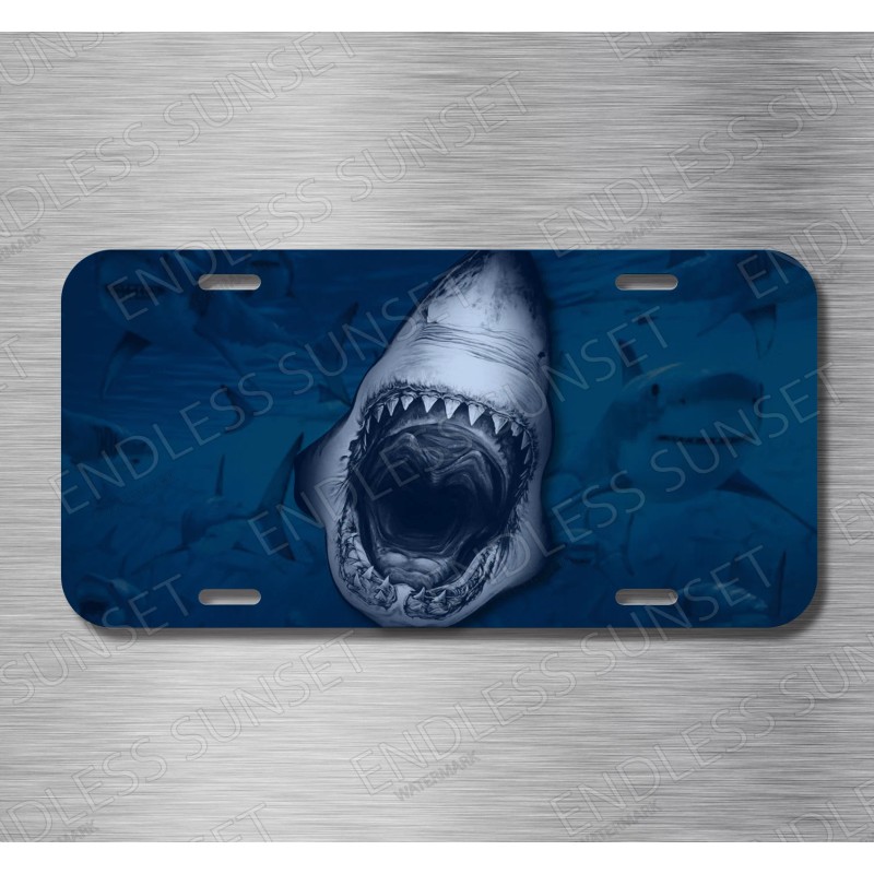 Amel Shark Attack Great White Shark Jaws tiburón Ocean License Plate Front Auto Tag
