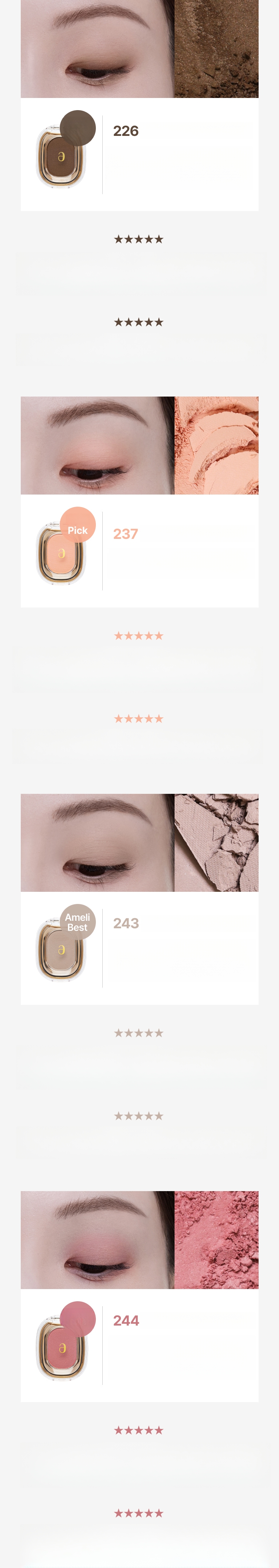 The ultimate daily multi-shadow for the basics. A fail-proof daily shadow. It can be used everywhere with just one Step Basic Eyeshadow for eyeshadow, blush, and contour. It applies the high-adhesion Blinder System and Long-lasting Color Effect System to maintain the initial feel for a long time. With minimal clumping and fallout, it can be used not only as shadow but also as a highlighter, blush, and contour.