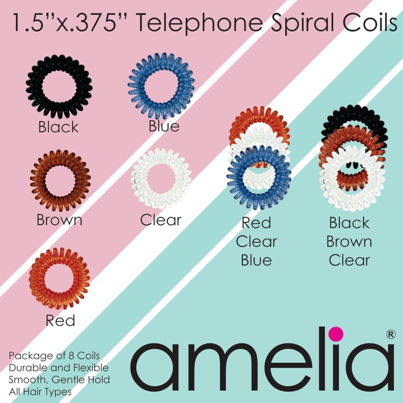 Amelia Beauty Products 8 Small Elastic Hair Coils, 1.5in Diameter Thick Spiral Hair Ties, Gentle on Hair, Strong Hold and Minimizes Dents and Creases, Blue