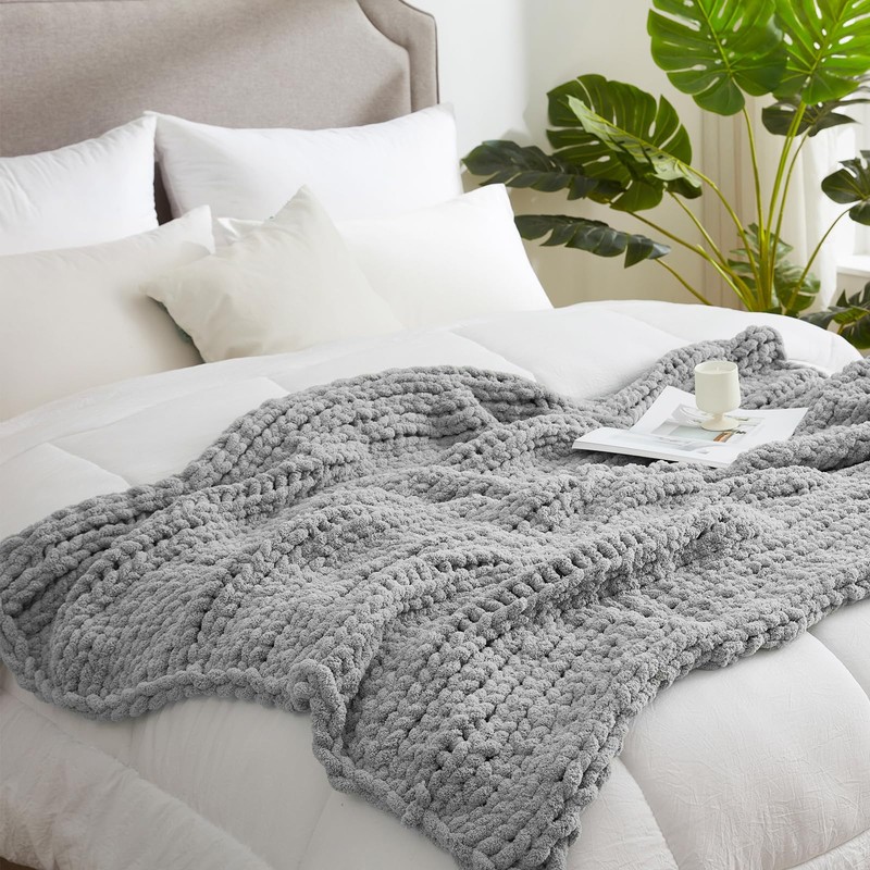 - Non-shedding & No pilling: Unlike other throws, this chunky knitted blanket is designed with high-quality chenille that prevent shedding. You can enjoy its embrace without the annoyance of shedding lint or fuzz.