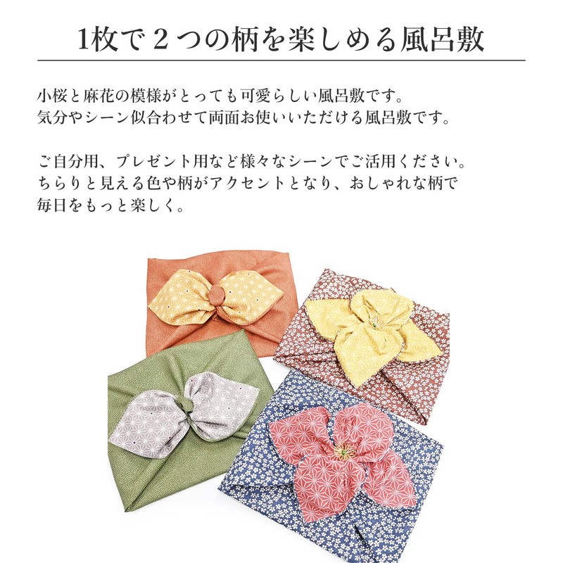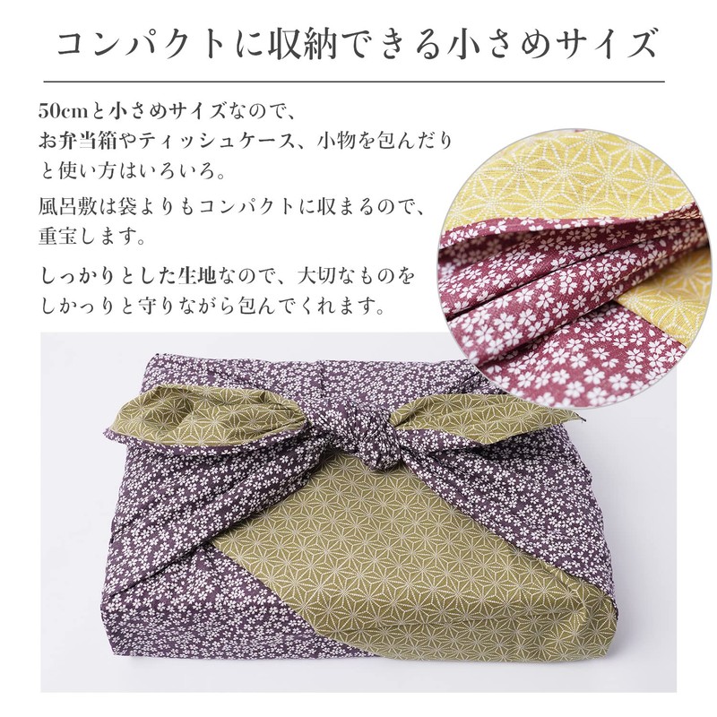 Amemari Furoshiki Reversible [Inner Width 19.7 inches (50 cm)] 100% Cotton, Smaller, Cherry Blossom, Floral Pattern, Japanese Pattern, Stylish, Cute, Job Cotton, Small Pattern, Double-sided,