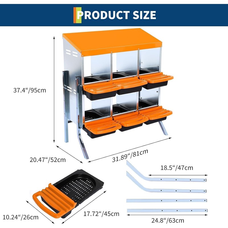 - 𝑪𝒐𝒎𝒇𝒐𝒓𝒕𝒂𝒃𝒍𝒆 𝑬𝒈𝒈-𝑳𝒂𝒚𝒊𝒏𝒈 𝑬𝒏𝒗𝒊𝒓𝒐𝒏𝒎𝒆𝒏𝒕 Specially designed nesting boxes provide hens with a secure, spacious shelter that effectively reduces poultry stress and increases egg production. Individual compartments prevent competition, while the deep bedding area satisfies natural nesting instincts for optimal laying comfort.