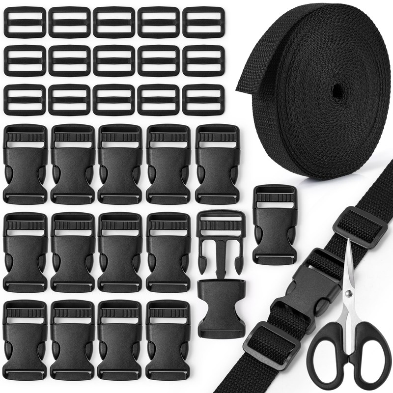 - ★【Webbing Strap Kit】: You will receive 1 Roll*10 meters nylon webbing straps, 15PCS adjustable buckles, 15PCS flat side release buckles and 1PC Scissors(easy to cut). These can be used for DIY projects and are sufficient for everyday use.