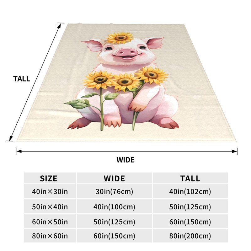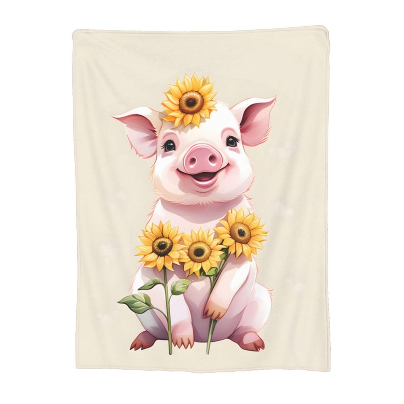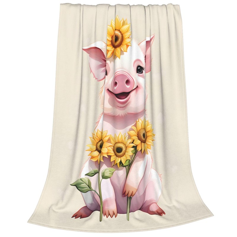 amepay Cute Pig Sunflower Blanket Gifts for Adults Kids Cartoon Piggy Piglet Flannel Throw Blankets Soft Comfy Lightweight for Home Decor Couch Bed Sofa 60x50 Inches
